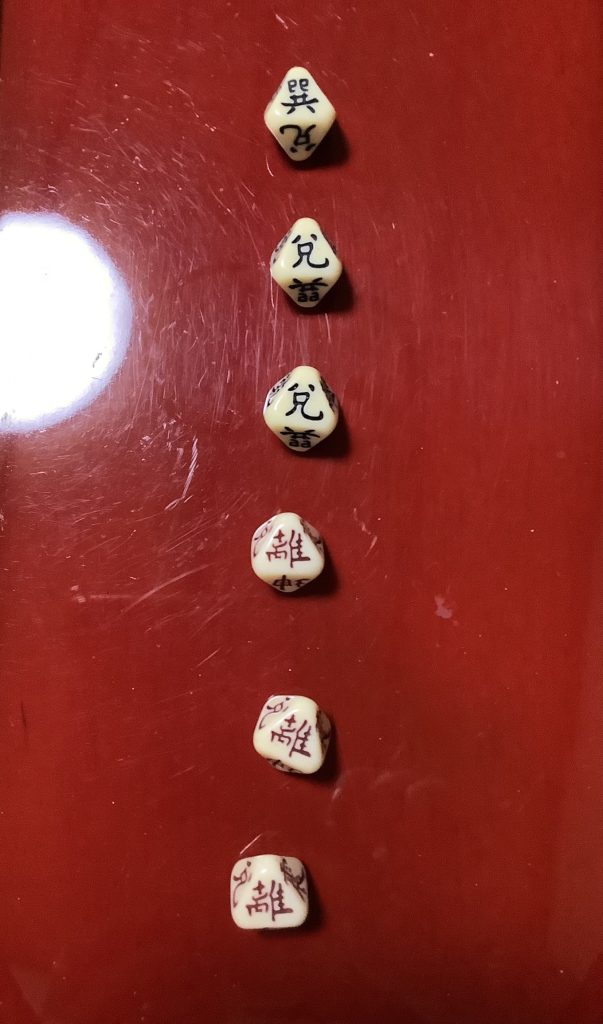 占いは、コインや筮竹(ぜいちく)で六つの線=「爻(こう)」を立て、そこから卦(け)を作り出して占います。