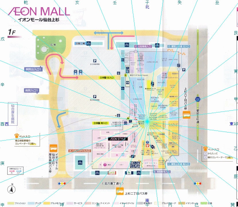 風水第9運で零神水である西南と東南に玄関があるので集客はよろしい。ただもう一つの北の入り口が折角のよい条件があるのに活かせていない。
